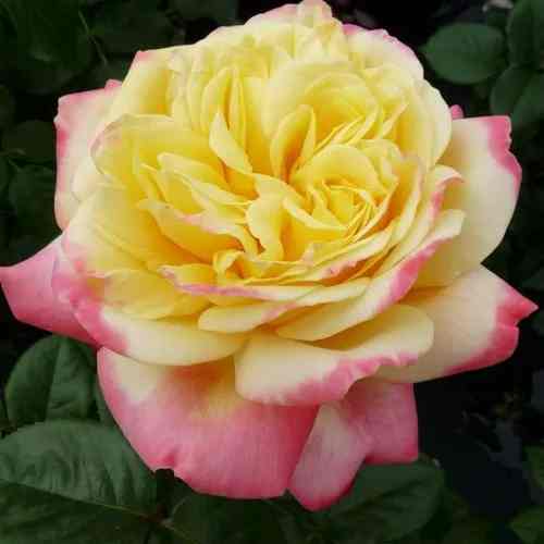 Роза Кордес Джубили новый очаровательный чайно-гибридный сорт выведен в Германии, селекция 2012 года. Отличается густо-махровыми красивыми и очень яркими цветками, которые произрастают как правило одиночно и не большими соцветиями. Цветок очень крупный до 12 сантиметров в диаметре. Основная окраска цветка насыщенно желтая, а края нижних лепестков ярко-розовые. Отлично выглядит на всех стадиях роспуска бутона. Цветение длительное и обильное, повторное. Присутствует приятный фруктовый аромат. Куст с большой силой роста, высотой вырастает до 120 см, компактно собран, шириной до 60 см. Устойчивость к болезням высокая. Отлично украсит любую клумбу, хорош для срезки.