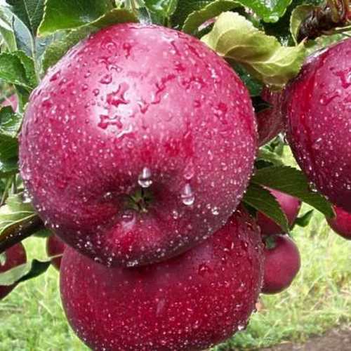 Кожица у яблок тонкая, а подкожные точки крупные и хорошо видимые, что добавляет им привлекательности. Мякоть плодов отличается белым цветом и мелкозернистой текстурой, она сочная и нежная, с кисло-сладким вкусом, что придает яблокам прекрасный баланс и делает их идеальными для употребления в свежем виде, приготовления соков или варенья.